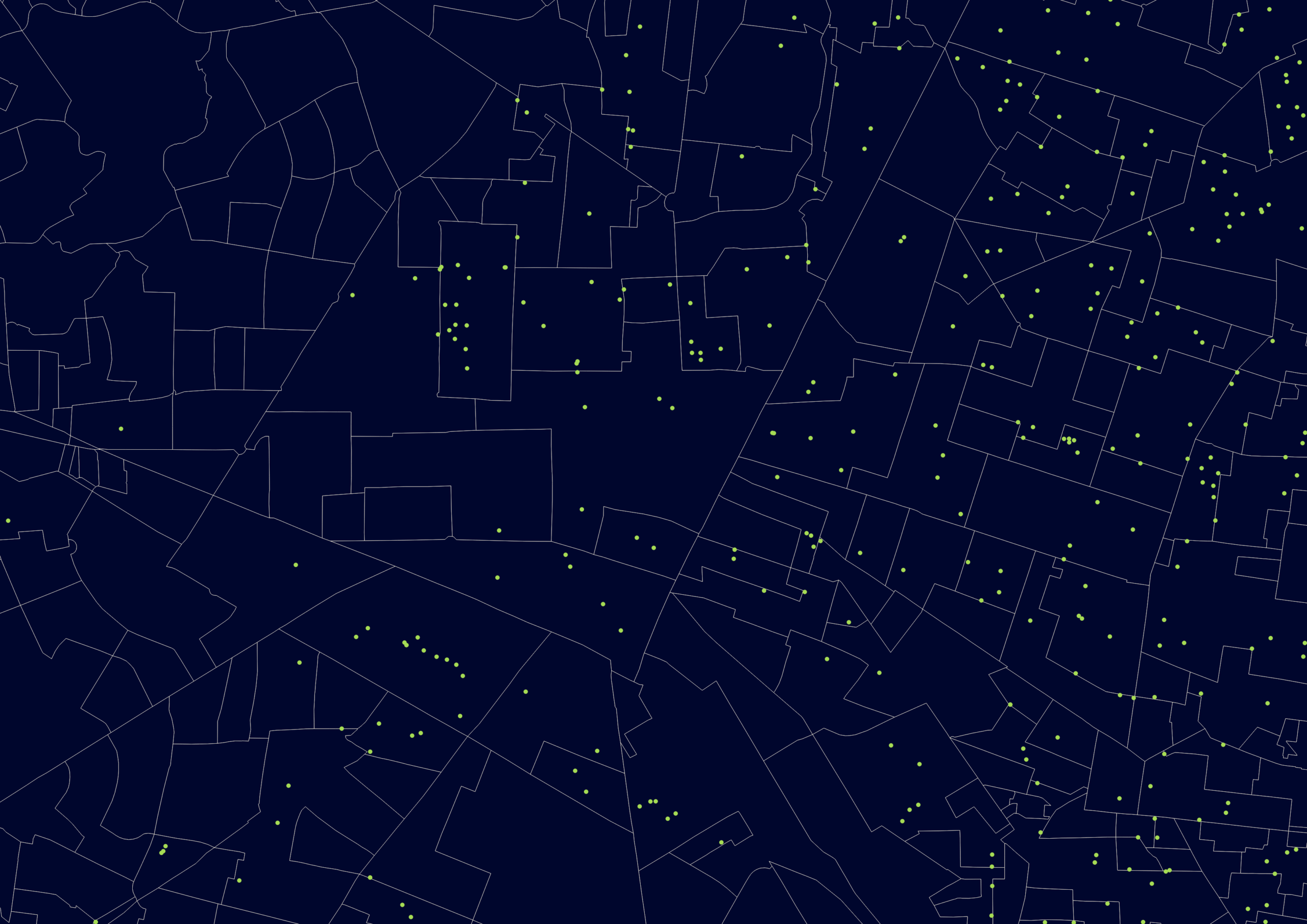 Mapeando la distancia de las colonias con cincuenta o más negocios en los municipales céntricos contra este perfil de colonias con altos recursos, vemos que, las colonias son concentrados en el oeste de la ciudad.